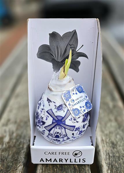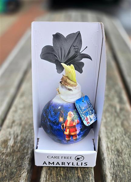 A charming hand-painted Amaryllis bulb, easy to care for with all the food and water it needs sealed inside a wax coating.